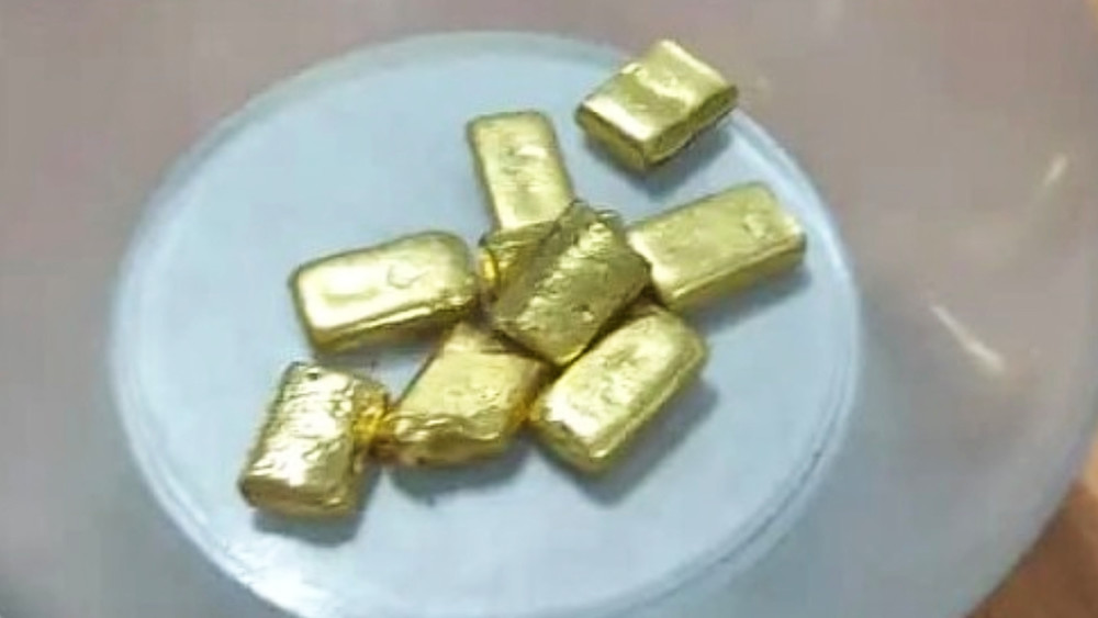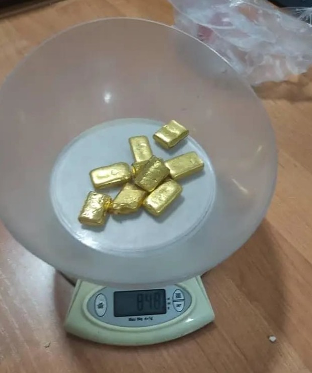 Также при личном досмотре в нижнем белье были обнаружены еще 4 слитка золота, о чем были составлены соответствующие акты. Общее количество обнаруженных слитков золота составило 9 штук, весом 850 грамм.