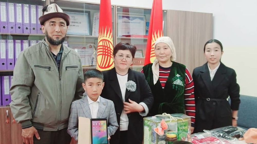 Инициативу главы села поддержали предприниматели и молодежь сел Чаек и Кызыл-Жылдыз. Общими усилиями Хамзе подарили новый велосипед и спортивную форму, а его родителям — памятные подарки.